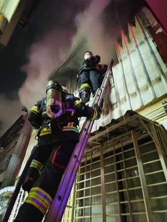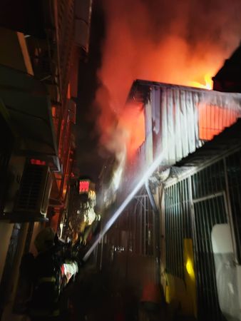 事發當晚11點左右,鄰居聽聞父子倆發生爭執,隨後傳出「碰」的一聲巨響,公寓後方的鐵皮加蓋廚房隨即冒出熊熊火焰與濃煙。消防單位獲報後立即派出15輛消防車與34名消防人員趕赴現場搶救,發現2樓處噴出大量濃煙、火舌,立即施加灌救,於11點31分撲滅,入內救人。