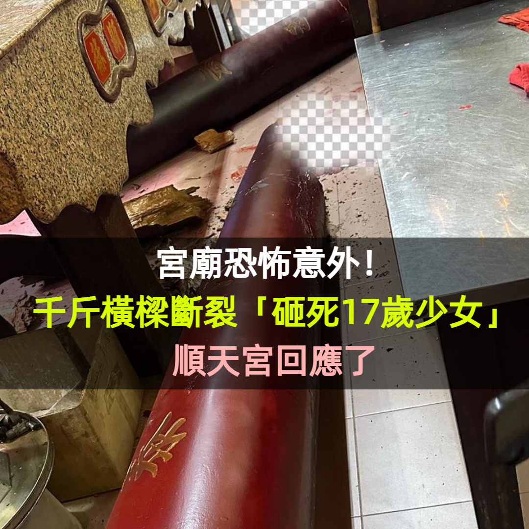 宮廟恐怖意外!千斤橫樑斷裂「砸死17歲少女」順天宮回應了