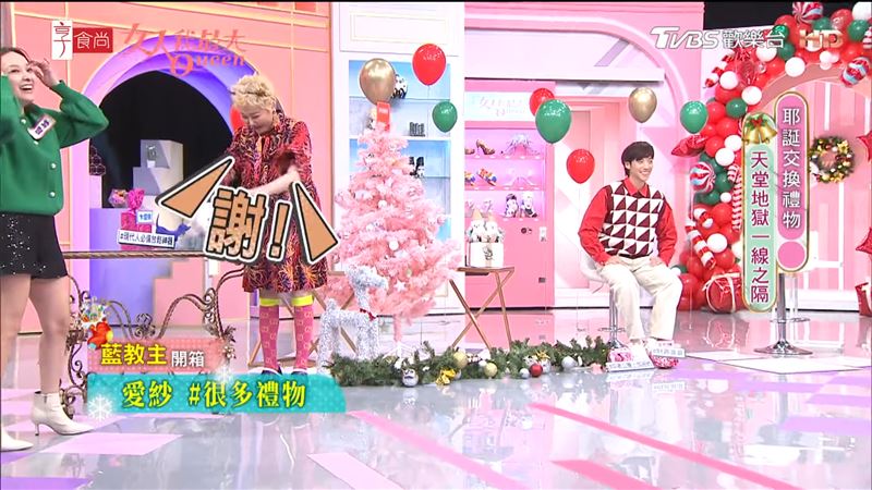 據《TVBS新聞網》報導,今(25)日是聖誕節,許多人都會應景玩交換禮物,而由藍心湄主持的節目《女人我最大》,日前也舉辦聖誕天堂、地獄的交換禮物,每位來賓分別準備天堂、地獄禮物,其中藍心湄的禮物成為全場爭搶的目標,經過輪番爭奪後,最後由女星徐凱希揭曉心湄姐的禮物,天堂禮物是有羊臉的白色外套,另一個則是名牌空盒地獄禮物。