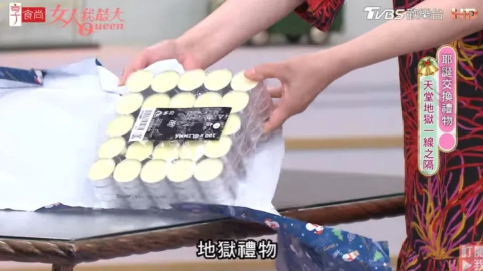 而藍心湄抽到的天堂禮物則是由來賓卞慶華準備的「現代人必備放鬆神器」,結果一拆開發現是眼部按摩器,讓藍心湄相當無奈,對方則解釋有時候手機或電視看久了,就能拿來按摩,還可以治乾眼症,藍心湄直呼,「我又沒有乾眼症!」她最後甚至直問「我們最後投票的爛禮物可以選兩個人嗎?!」一番話當場惹笑現場大家。