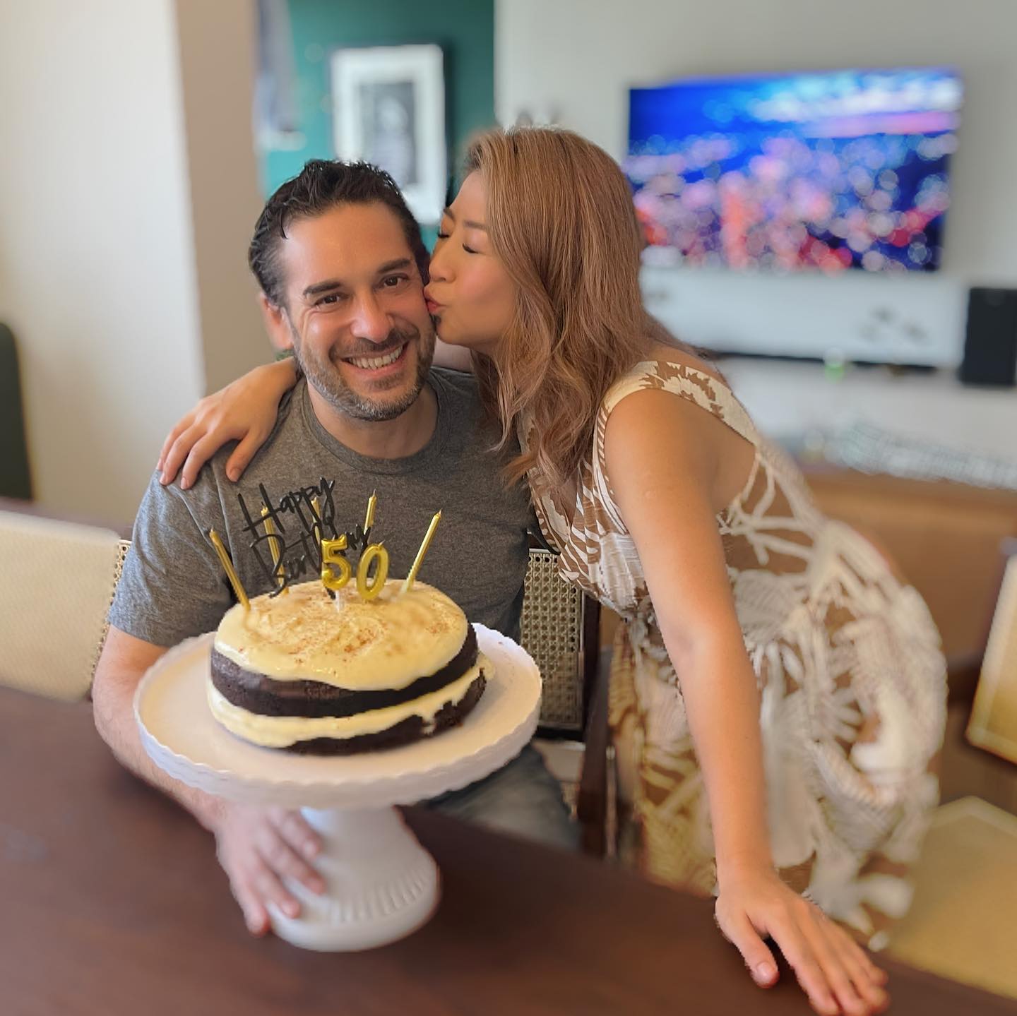 有了新戀情的消息盛傳一段時間後,黃湘怡在近日曬出了幫Jon慶祝50歲生日的畫面,其中兩人不僅一同下廚,黃湘怡還獻上了巧克力蛋糕,並且嬌羞的向Jon獻上一吻,接著在文中大方公開兩人的戀情:「祝我的愛人生日快樂。 謝謝你愛我的樣子,你是超棒的夥伴! 我喜歡和你一起過日子!」