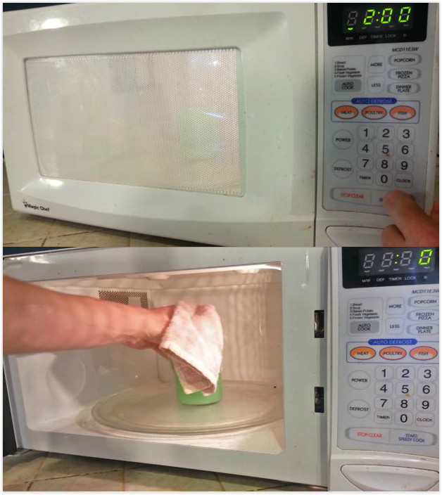 第三步,將混合好的溶液放到微波爐里加熱兩分鐘,然後將其從微波爐里取出來。