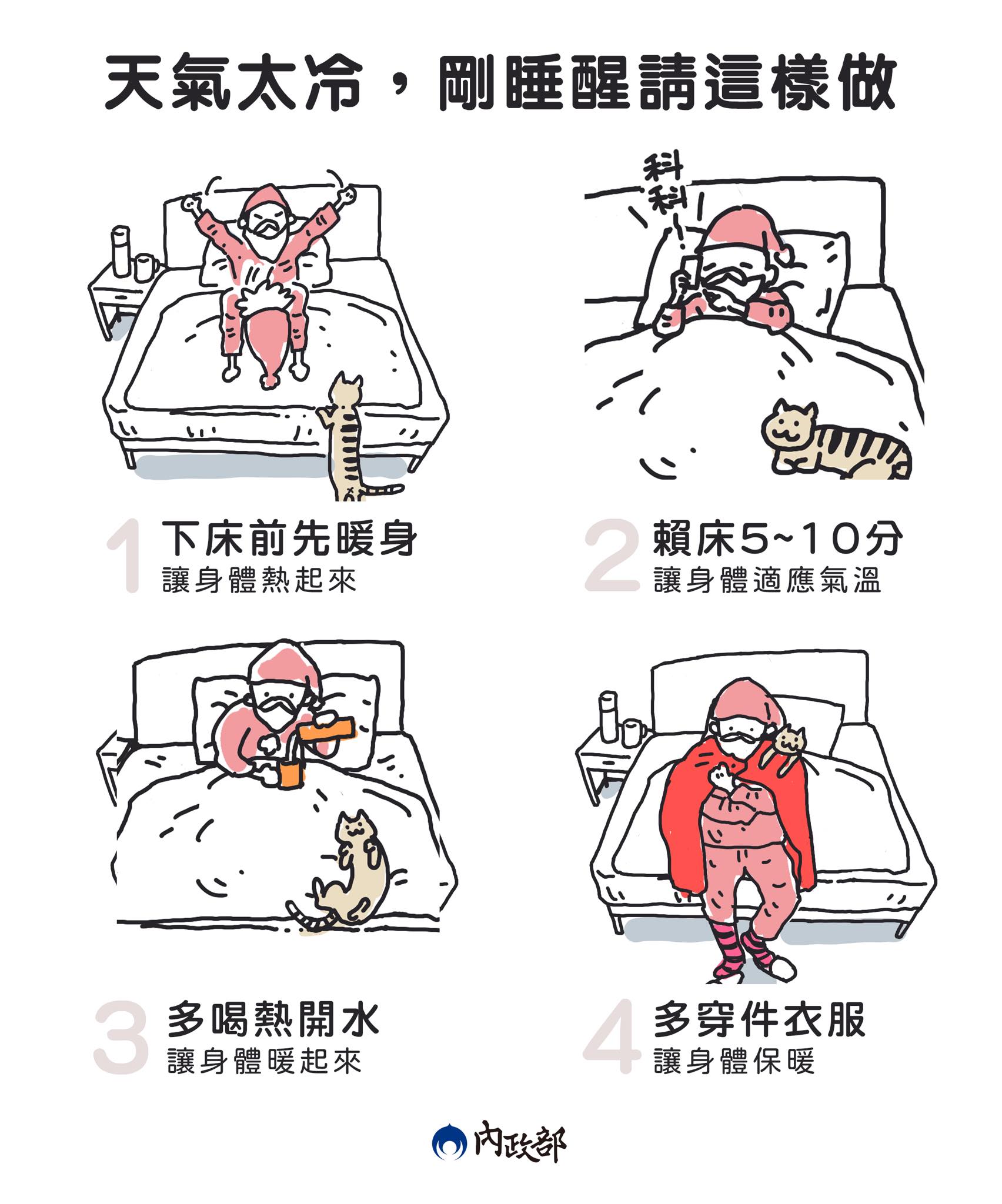 相信不少民眾出門都感覺到氣溫真的變低了,根據氣象署指出,第3波寒流南下強勢影響台灣,從下午開始會變更寒冷,且有局部短暫雨,大家出門一定要穿著保暖。隨著氣溫下降,不少上班族和學生每到寒冷季節就特別難以早起。對此內政部曾提出「早上做一件事」對身體相當好。
