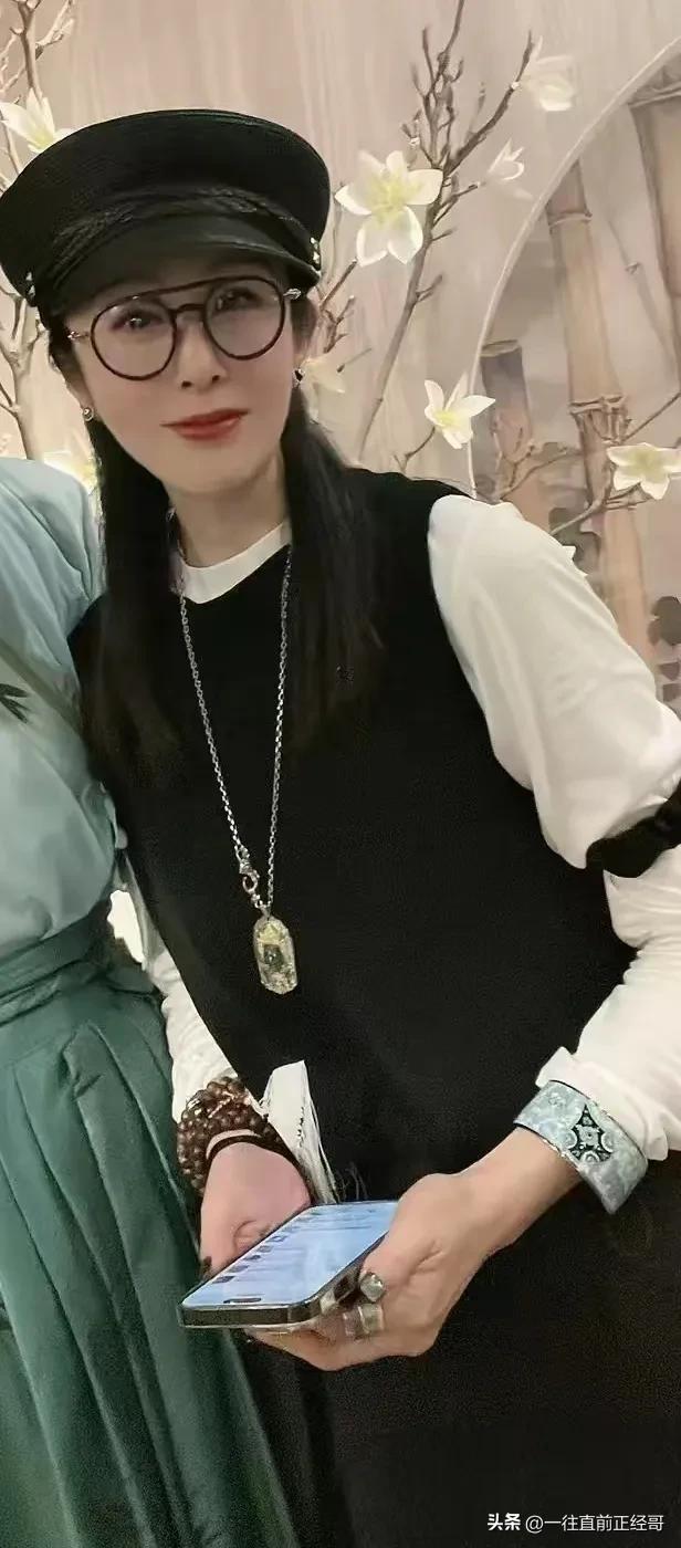 當天張敏的打扮相當有型,一身當下流行的潮牌服飾,項鏈搭配恰到好處,頭上戴頂黑色貝雷帽,架著副黑框眼鏡,長髮披肩的樣子還是那麼有氣質,妥妥的女神!