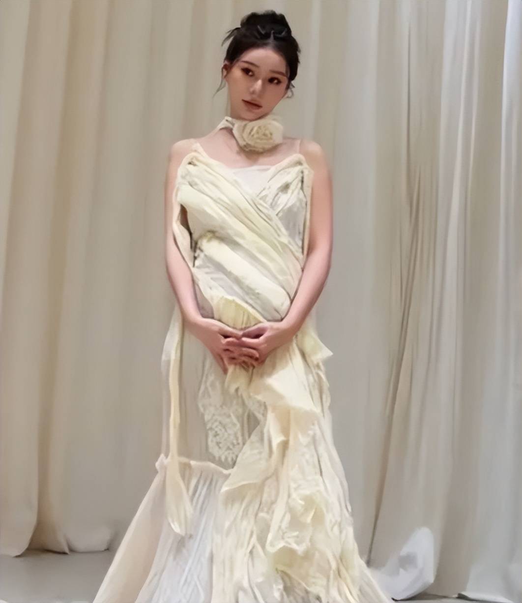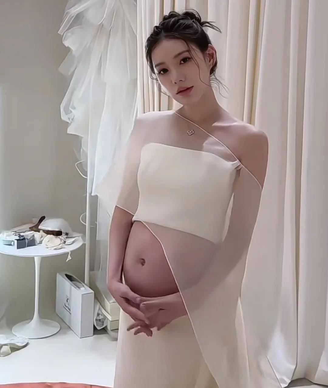 從被曝光的孕期寫真試裝可以看到,馬筱梅身穿白色裹胸上衣,搭配同色的長裙,她將頭髮高高盤起,整個人溫柔大方,有一種獨屬於孕期女性的母性美。