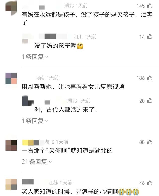 白髮人送黑髮人!去世兩年女兒「突打來電話」 85歲母親接聽後「全網瞬間淚崩」 喵鼻頭02 2025-03-03 檢舉 老人李艾梅與孫女在一起茶園嶺村村民委員會主任靳宇玲介紹,老人家庭十分和睦,兒孫都很孝敬,輪番在床前照顧,一家人與村民們的關係也非常融洽。平時,村裡人也幫助老人的家人,善意隱瞞著她大女兒去世的事情。3月1日晚,極目新聞發布這一善意的謊言短影片後,短短1小時便引發數百萬網友關注,不少網友感動留言: Advertisements 網友評論「誰家裡還沒有個奶奶啊?!讓我們一起祝福奶奶長命百歲!」參考來源:今日頭條 Advertisements 回首頁 2/2 Advertisements 猜你會喜歡 女兒帶大20歲男友回家!母親堅決反對「兩人婚事」 看完男人的一封信「她癱坐在地」 22歲愛女病逝!資深男星「走不出喪女痛」留白長髮現身 掛骨灰項鍊「代女做1事」惹淚 編輯精選推薦 More + 85歲失智父身亡!林葉亭突宣布「皈依佛門」 遇大師「開示一番話」忍不住淚崩 曾比江蕙紅!台語歌后「爆未婚生子」遭指指點點 「2次手術害癱瘓」72歲近況曝 空窗多年!68歲陳美鳳突羞認「身邊有個他」 40年前就認識「遭男方母親拆散」 天生命好!老了無病痛「能長壽」的4個生肖女 晚年不給子女添麻煩「一生福氣多多」 台語歌后慟別摯愛!告別式上認「早隱瞞病情」 道歉哭喊:原諒我簽放棄急救 慶祝17歲愛女畢業!53歲大咖「兒女皆讀名校」年花千萬 驕傲「她獲三大獎」:又美又自信 15歲兒「睡夢中離世」!本土女星「送愛子火化」求做1事 「PO照圓滿了」:媽媽和你永不分開 模範孝子!比莉罹癌「兒白天工作、晚上睡醫院」 坦言「一滴淚沒掉」:媽媽可以我也可以 以為只是小感冒!本土女星悲痛證實「他併發肺炎過世」 一度淚灑現場「後悔同意插管」 晚年兒孫滿堂!73歲影壇大哥「拄拐杖現身」腳步蹣跚 兒子「全程攙扶不喊累」網羨:又帥又孝順 離婚11年!洪榮宏愛女結婚「終破冰前妻」 「2爸爸牽她進場」催淚畫面曝 王力宏驚喜宣布「再度當爸爸」當場激動落淚! 再婚2年了!43歲李燕突喊「當媽媽實在太辛苦」 認「已經有愛的結晶」:最完美的幸福❤️ 本土劇女星生了!7年前凍卵「終於來到我身邊」 歌手尪嗨喊:生個足球隊 旅美多年!資深女星「堅持落葉歸根」回國5天安詳離世 死前「砸600萬做1事」眾人淚目 趕在40歲前閃婚!八點檔女星「宣布嫁給他」 尪驚人身分曝「媒人是柯叔元」 功德圓滿了!台語歌后「悲曝他離世」享壽95歲 淚喊:去當快樂的神仙吧... 大咖男星妹妹出嫁!全身金飾「曾獲近千萬豪宅」嫁妝豐厚 兄妹長超像「一看媽媽懂了」:基因強大 相差18歲!58歲康康自爆「與老婆分房12年」驚呆眾人 提到沈玉琳「坦言罹同1病」:必須警惕... 22歲愛女病逝!資深男星「走不出喪女痛」留白長髮現身 掛骨灰項鍊「代女做1事」惹淚 最新/賈靜雯深夜慟曝「她已離世」 淚PO合照喊:真的好愛你... 24歲兒失明!于美人爆「他在飯店掃廁所」維生 不盼紅包只求「別再花我的錢」 親自抱下女兒遺體!郭主義喪女5年「鼓起勇氣做一事」 潰堤曝「心碎畫面」:永遠做妳驕傲的老爸 婚變尪落跑!單親媽「獨扛千萬債養孩」到處躲黑道 「一開口驚艷眾人」熬成台灣歌后 當年親吻1歲嬰!42年後「對方竟成巨星」同框劉德華 「超高顏值如兄弟」粉絲喊:真的差19歲?