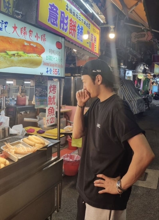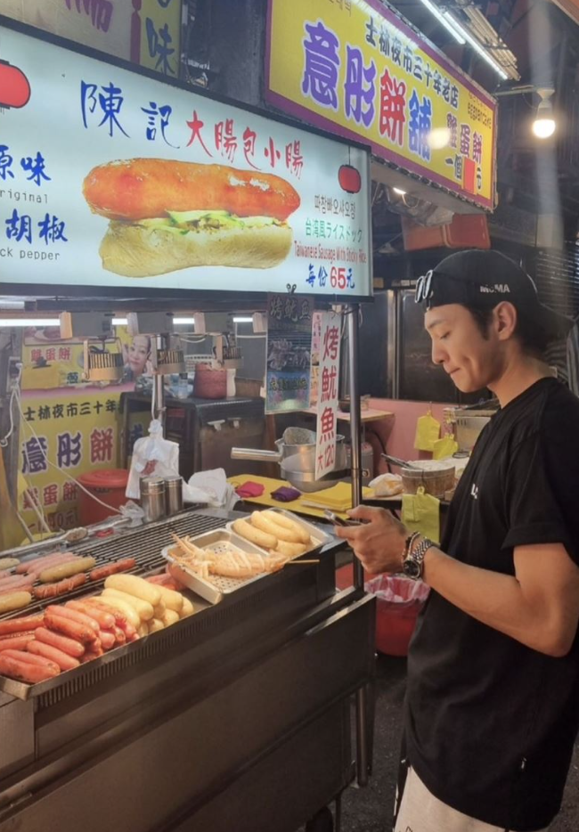與此同時,有一名與他交好的男星也悄悄抵台,並體驗台灣的風俗民情。這名男星在IG限時動態中,曬出一張台灣知名地標「101大樓」的照片,並附上中華民國的小貼圖,向粉絲們報告已抵達台灣。而他當晚也去到士林夜市觀光。只見他穿著全黑上衣、鴨舌帽,完全不用口罩掩飾臉蛋,選在大腸包小腸攤位前滑手機、假裝苦惱如何點單,模樣十分可愛。
