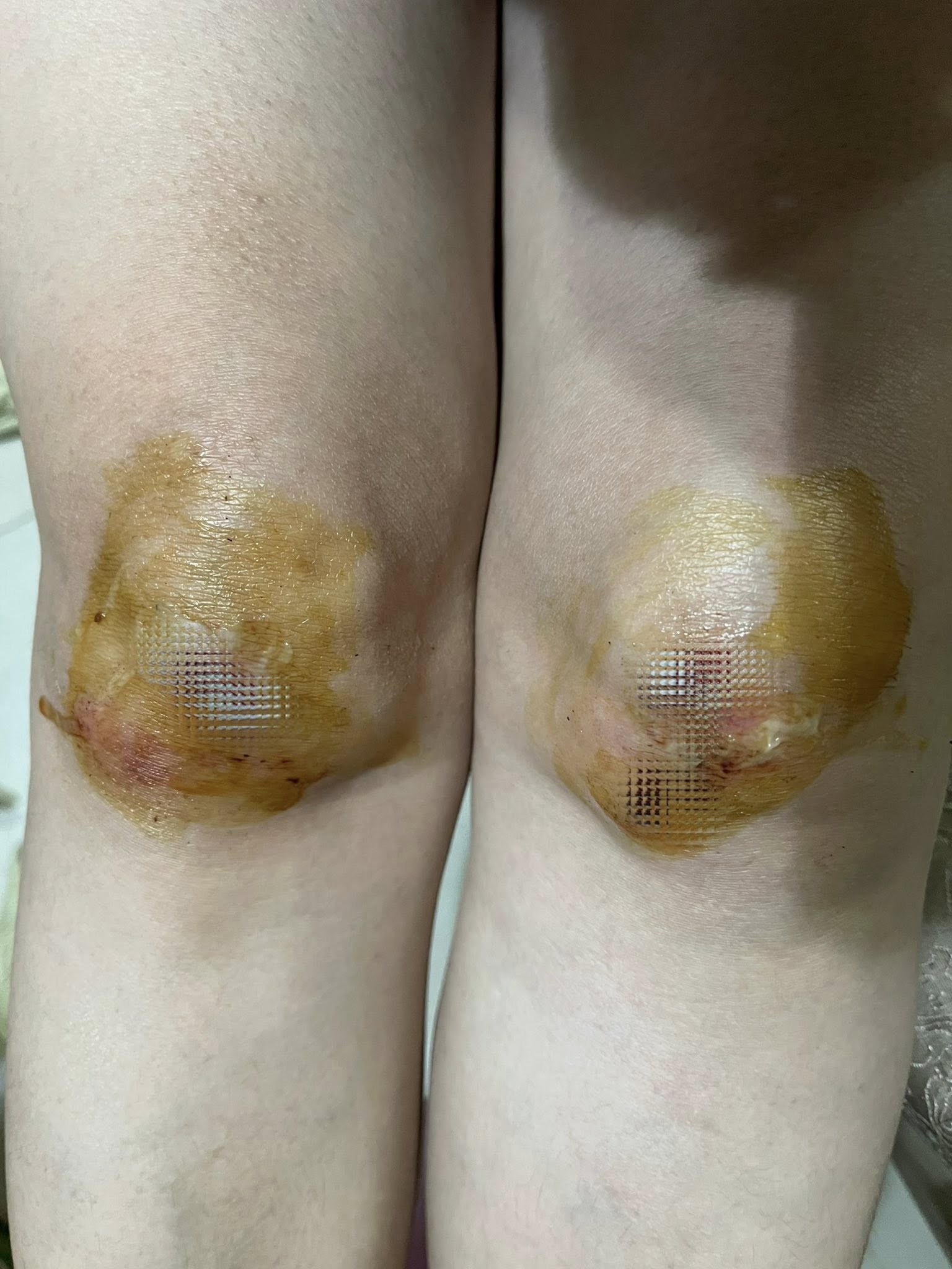 這場意外不僅讓她自己嚇了一跳,傷勢更是相當嚴重,傷後頭三天對陳思安來說格外難熬,膝蓋部位因發炎腫脹而劇烈疼痛,讓她夜不成眠,必須依賴止痛藥才能度過難關,傷口畫面不難看出雙膝腫脹、瘀青,也有明顯外傷!