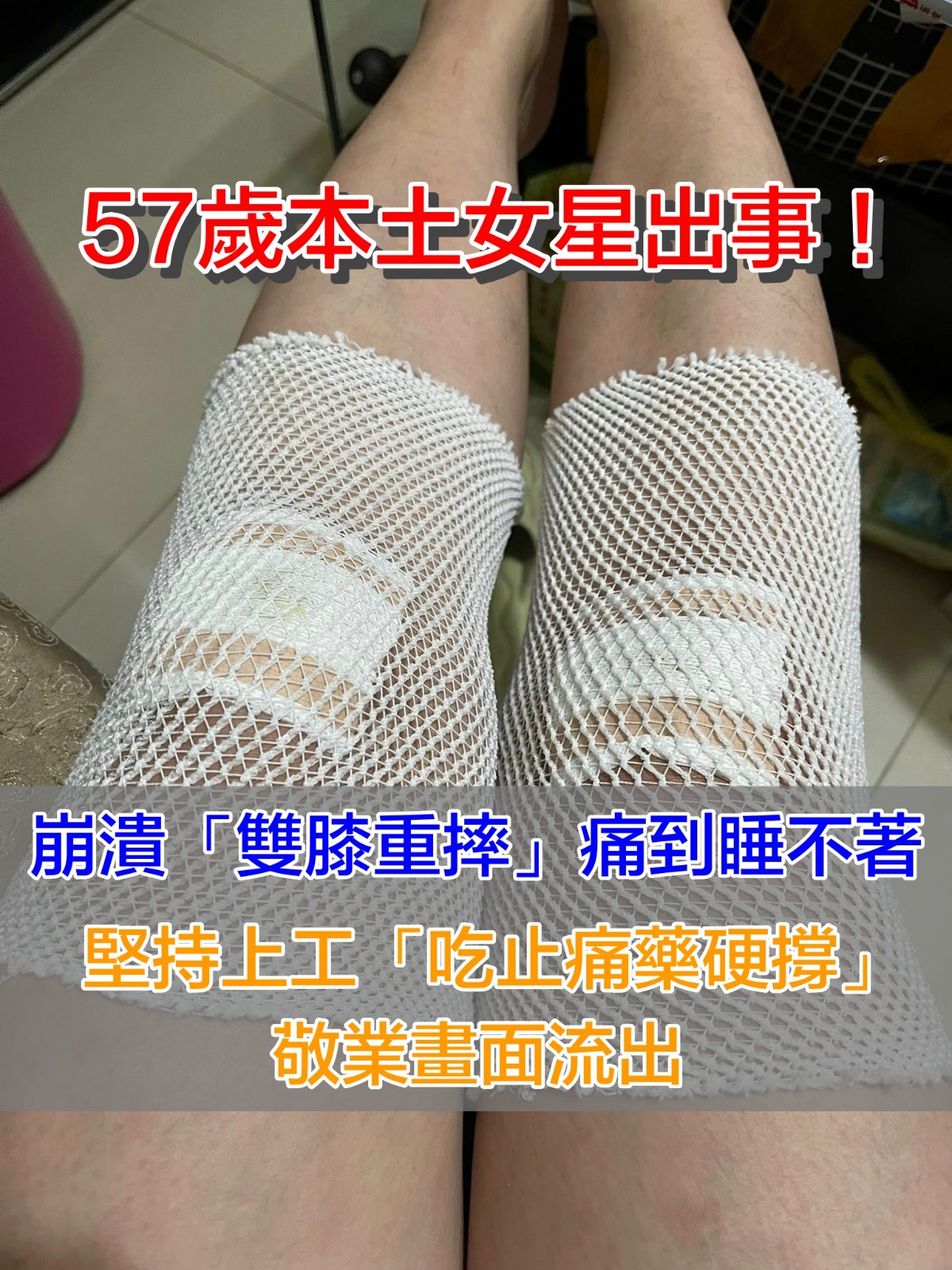 57歲本土女星出事!曝「膝蓋跪地重摔」吃止痛藥硬撐 堅持上工「敬業畫面流出」喊:過運過運