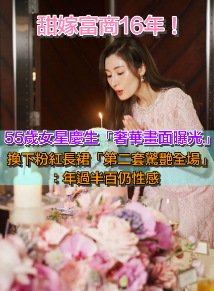 甜嫁富商16年!55歲女星慶生「奢華畫面曝光」 換下粉紅長裙「第二套驚艷全場」:深V到肚擠