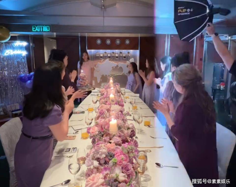 工作人員和閨蜜一起為其唱生日歌,現場還有燈光師與攝影師記錄這一幸福時刻。