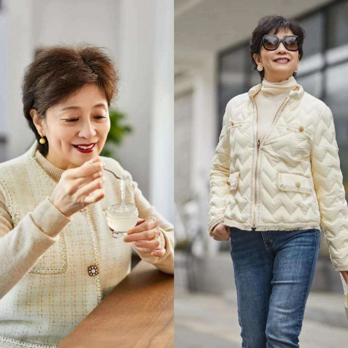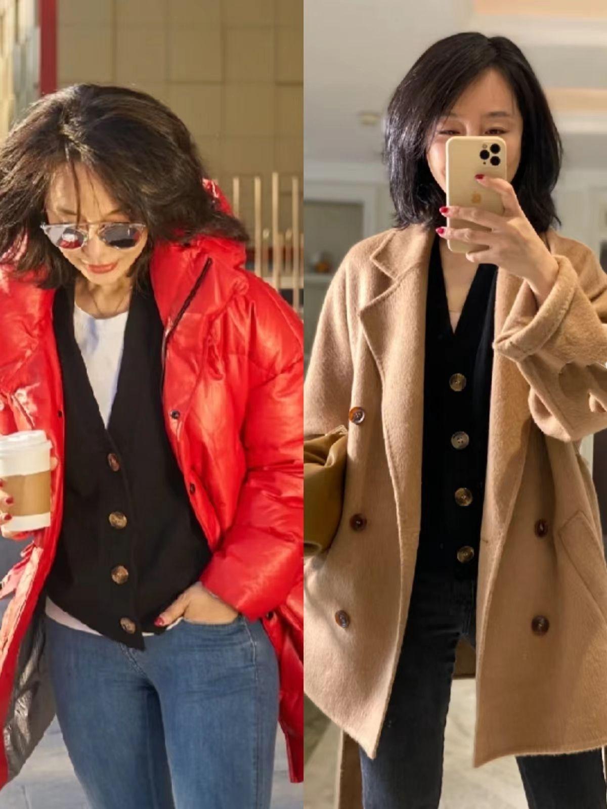 女人老了在穿搭上要學習的地方很多,其中一個關鍵是領型選擇。這裡推薦多選v領剪裁的服飾,比如針織打底衫、奶奶衫等等。
