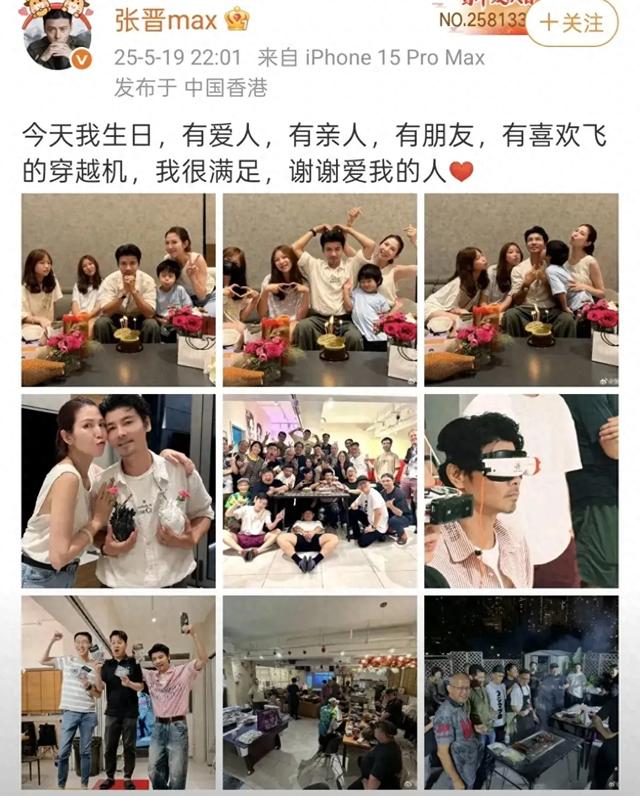 5月19日,演員張晉在社交平台曬出全家福慶祝51歲生日,妻子蔡少芬和三個孩子甜蜜出鏡,親朋好友齊聚一堂,場面溫馨熱鬧。照片裡,張晉被孩子們環繞,兒子親著他的臉蛋,兩個女兒和蔡少芬也湊近嘟嘴,一家五口其樂融融。除了家庭照,張晉還分享了與朋友們的聚會場景,燒烤、穿越機、歡聲笑語,整個生日會既溫馨又充滿活力。