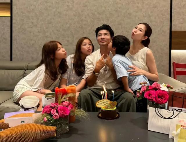 生日照裡最動人的一幕,莫過於三個孩子圍繞在張晉身邊,兒子親著他的臉,女兒們撒嬌賣萌。這種親密無間的互動,不是擺拍能裝出來的,而是長期陪伴和最佳親子關係的結果。