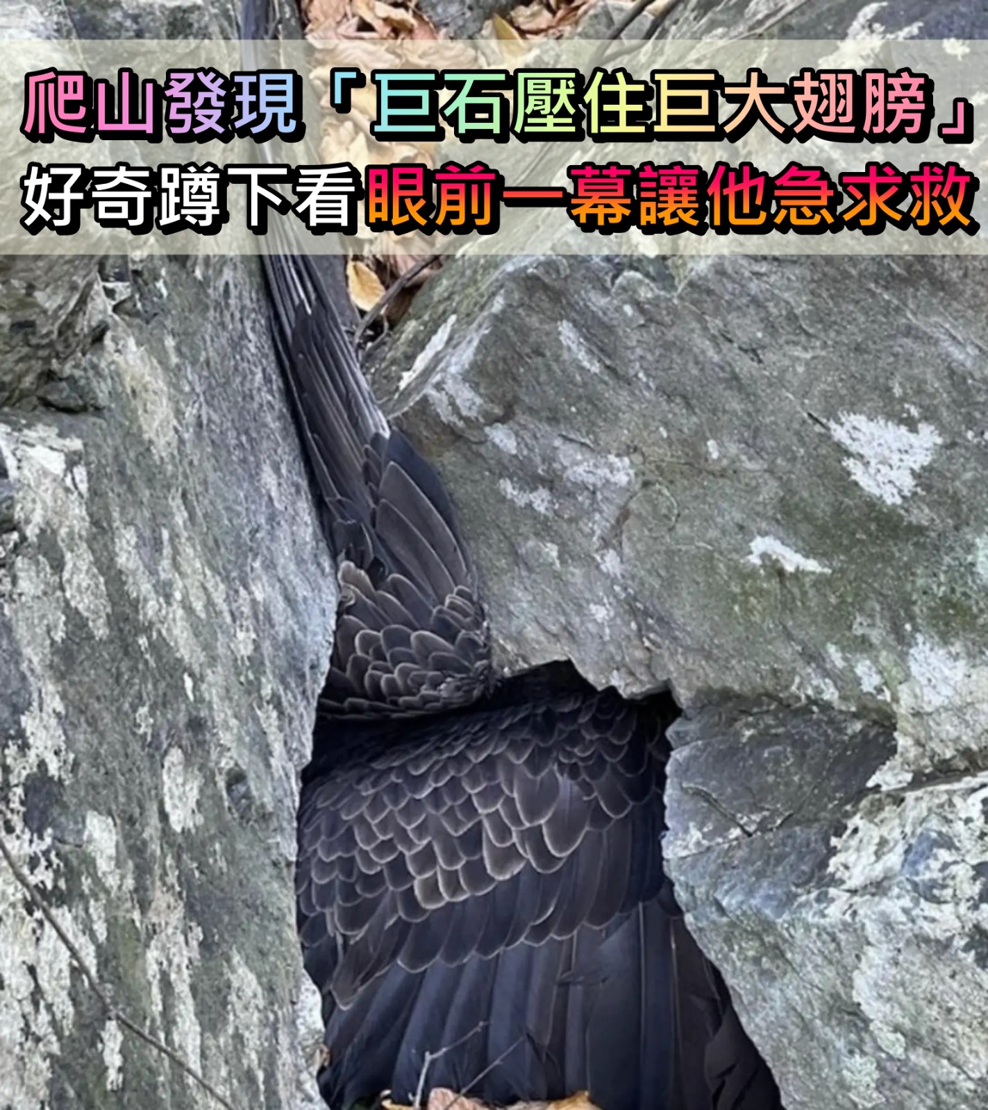 他意外發現「巨石壓住巨大翅膀」感到不對勁!好奇蹲下看「被眼前一幕嚇壞」緊急求救