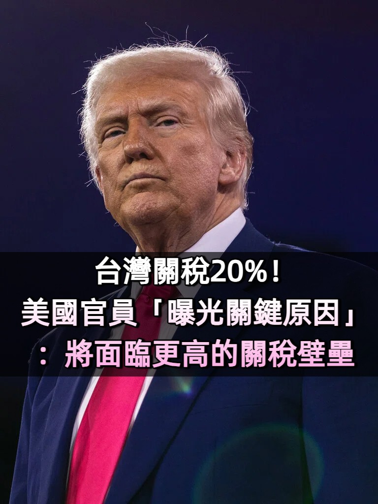 台灣關稅20%!美國官員「曝光關鍵原因」:將面臨更高的關稅壁壘