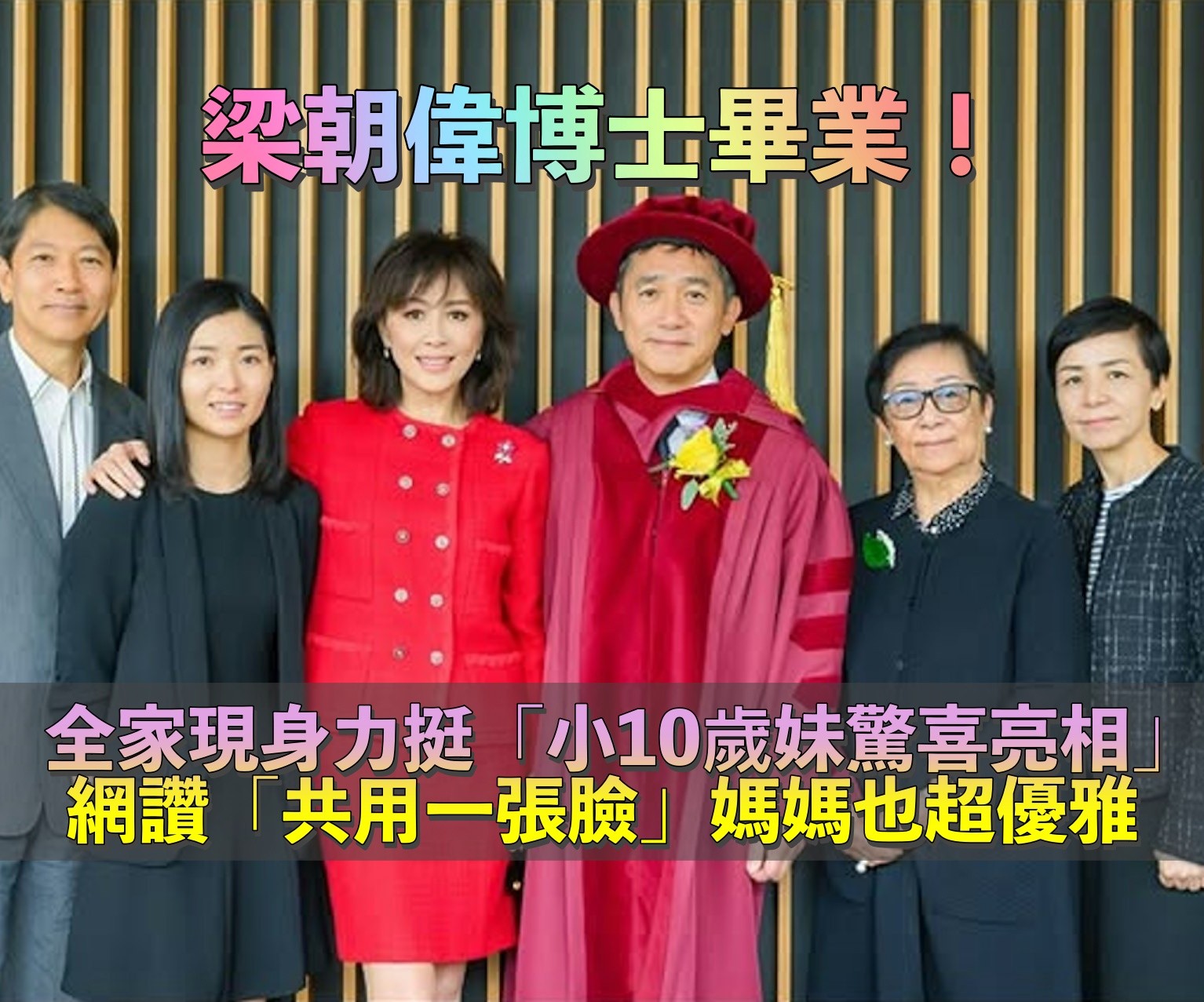 梁朝偉博士畢業「全家福曝光」!小10歲妹妹長相曝「和他共用一張臉」媽媽超優雅