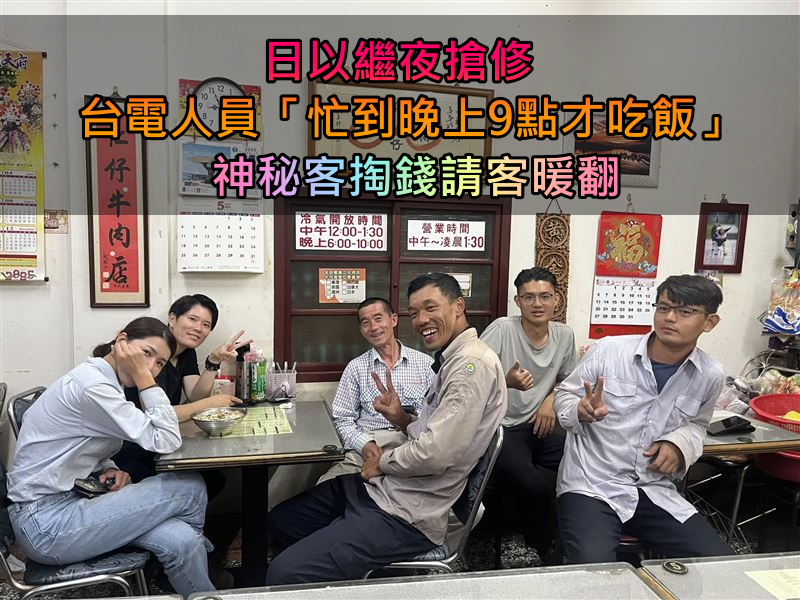 日以繼夜搶修!台電人員「忙到晚上9點才吃飯」 神秘客「掏2000霸氣請客」飲料店也出手了
