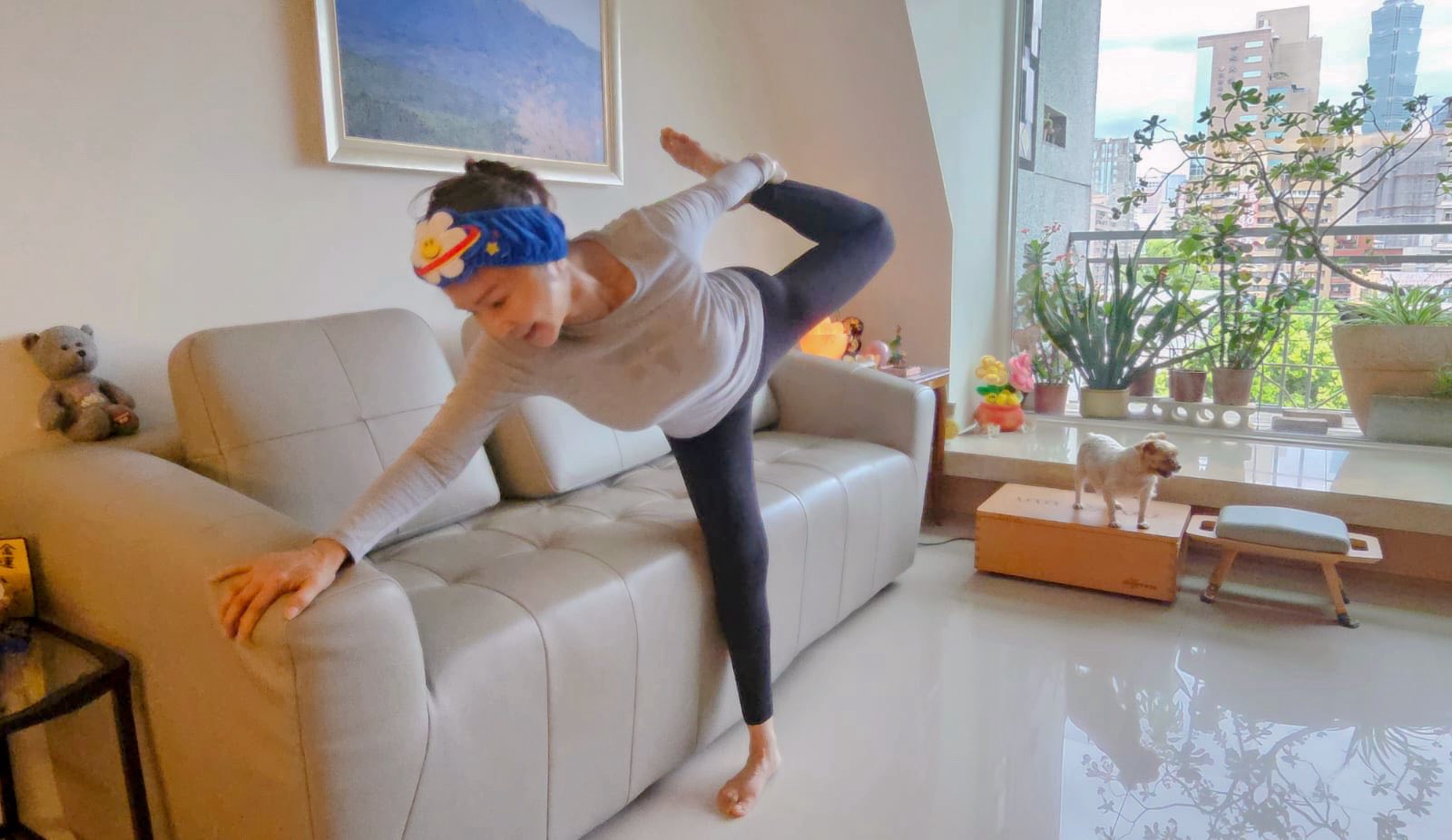 根據《LINE TODAY》報導,陳美鳳日前久違分享在客廳做瑜伽的側拍照片,只見她戴著可愛的藍色卡通髮帶,身著灰色緊身長袖搭配深灰九分瑜珈褲,專注地跟隨教練的指示練習,超自律的私下狀態令人敬佩!