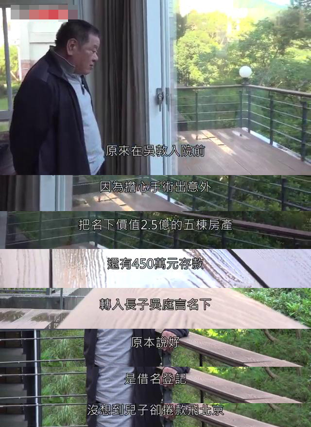 不過經過在媒體喊話後,兒子也立刻回台灣認錯,父子倆恢復感情,也讓對方跟女友分手,可說是一舉兩得,至於因為爸爸爆料,讓吳庭言被外界冠上「敗家子」的稱號,會不會太在意?他也透露,其實自己最在乎的,還是吳敦的健康狀況,尤其自己也有事業要經營,並非外界所說的啃老族,吳敦也緩頰,表示自己喜歡把錢亂花掉,兒子也是為了保護他,才會把錢都帶走。