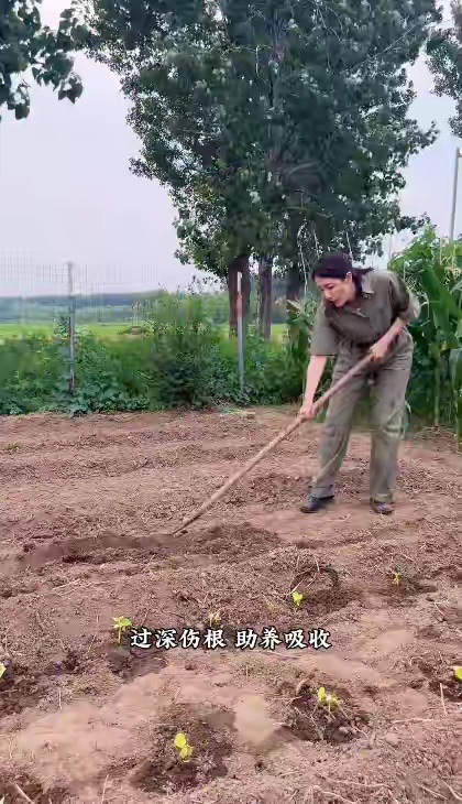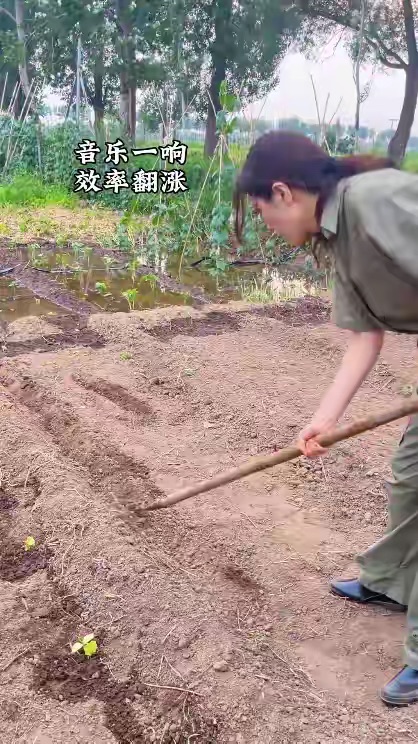 曾黎手裡的鋤頭蠻聽話的,她認真的刨地、還不停地澆水。土壤鬆軟以後,就可以適當的澆水了。