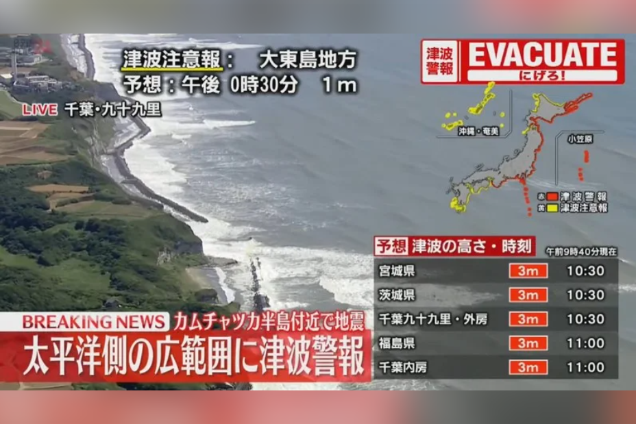 值得注意的是,氣象廳原本僅發布海嘯注意報,但隨著地震規模從8.0上修至8.8,加上可能引發更高的海嘯,因此在上午9時40分提升為警報等級。專家提醒,由於地震震央位於海外,這次的海嘯警報可能會持續相當長的時間,甚至超過一天才會解除。