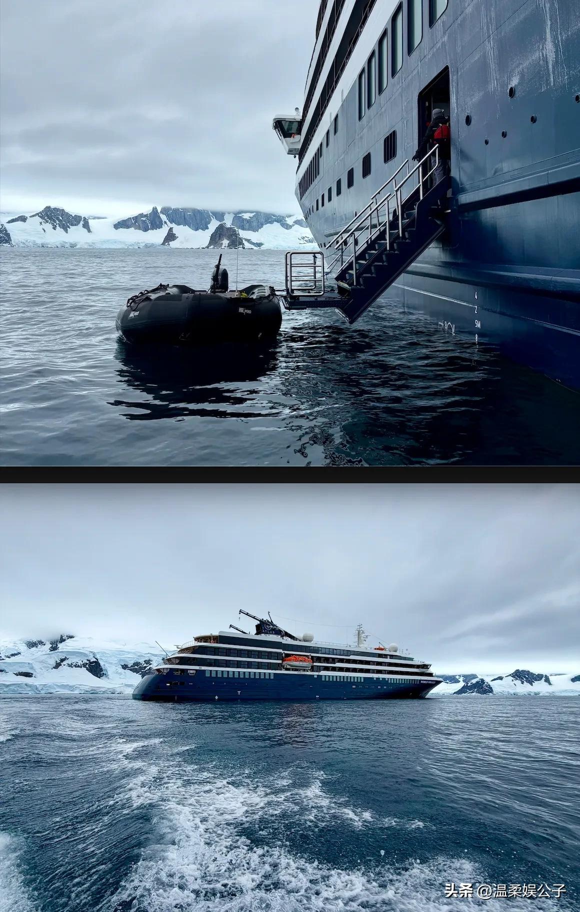 三天後,他如約來到南極,從費翔曬出的照片,我們可以看到他乘坐的是世界探索號游輪。