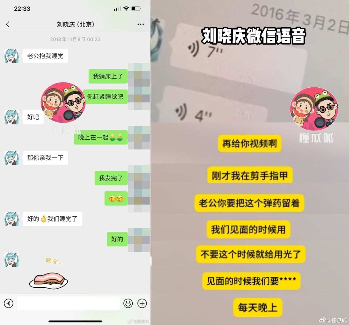 中國狗仔「懂瓜呱」就表示,曾有知情人士透露,劉曉慶在2015年就跟資深攝影師出軌,兩人還祕密交往多年,並曝光調情文字、語音,其中劉曉慶稱呼男方為「老公」,更害羞說:「老公你要把這個彈藥留著,我們見面的時候用!」曖昧程度破表。知情人士也曝光,劉曉慶與小三攝影師是在2015年聚會中認識,兩人發展成情侶,當時跟第四任老公王曉玉結婚才2年,當時劉曉慶還跟男子說,因為老公年紀大了,把自己當作跟女兒一樣,兩人並沒有其它夫妻之實,這才讓攝影師放下心。