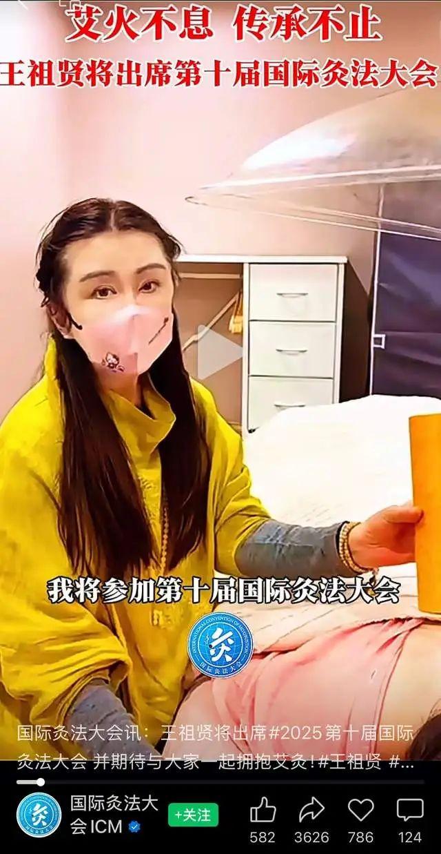 2025年4月26日至28日,第十屆國際灸法大會在江蘇無錫召開,王祖賢作為加拿大「灸覺」艾灸館的主理人進行了「特別分享」。據介紹,大會系專業性學術會議,不設置任何形式的粉絲見面會或公眾互動環節。