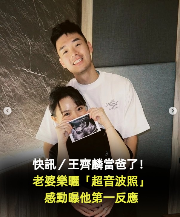 在分享的影片裡,記錄下王齊麟得知即將當爸爸時的反應,只見他看到驗孕棒上的兩條線,立刻露出難以置信又興奮的表情,驚呼「真的假的」,隨即起身緊抱妻子,畫面十分溫馨。