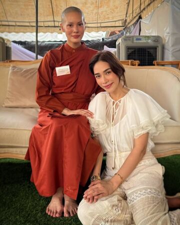 這位在泰國家喻戶曉的螢幕女神,選擇在沙拉武里府的Sriworayanalai寺院披上袈裟,展開為期9天的修行之路。寺院為她賜予「Dhammakalyani」這個充滿祝福的法號,代表「擁有法之美的女性」,展現她對佛法的虔誠與追求。