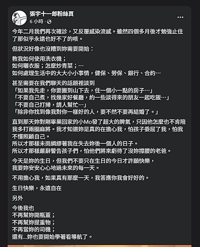 這張照片能看出張宇現在整個人呈現出的狀態,而張宇為妻子慶生所發布的長文,則向外界告知了他經歷了什麼。