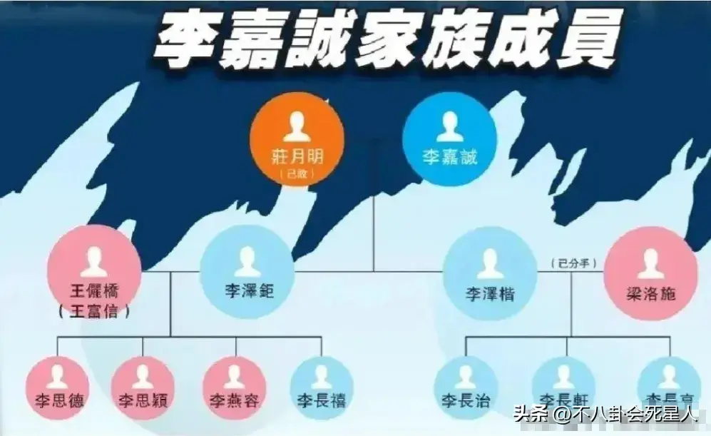 95歲的李嘉誠一共有一位原配妻子庄月明,和庄月明生下兩個兒子李澤鉅和李澤楷,李澤鉅和妻子王儷橋生了3女1子,李澤楷生了3個兒子。