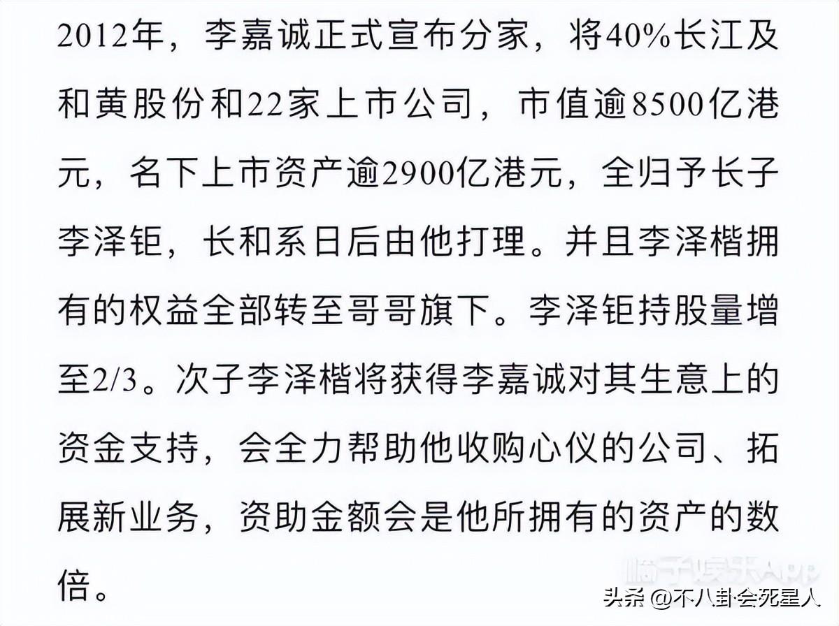 李澤楷雖然有3個兒子,但他的3個兒子恐怕和李嘉誠家族生意沒什麼關係了。當然,以李澤楷的資產來說,他的3個兒子已經跑贏了很多人。