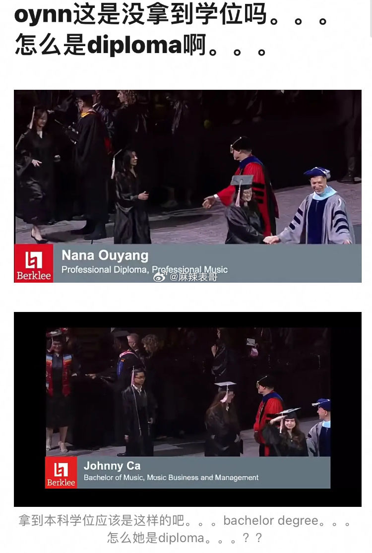 而消息傳出後,也引起不少網友留言,然而有眼尖中國網友卻發現歐陽娜娜的畢業證書只有文憑(diploma),而不是學士學位(bachelor degree),質疑她「才女人設翻車」,對此她本人也在昨日親上火線回應。