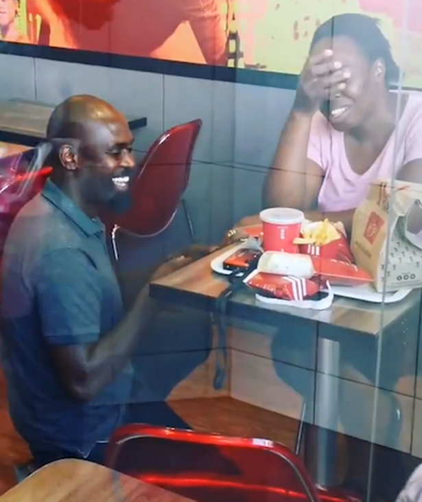 南非一對可愛的情侶就讓網友們都見證了愛情的真實面貌!事情發生於2019年,原來有網友在吃肯德基的時候,突然看到旁邊一陣騷動,沒想到竟意外目睹了甜蜜的求婚現場!一名穿著灰色襯衫的男子在肯德基裡單膝跪下,掏出戒指向對面的女子求婚,雖然現場並沒有氣球或花朵,桌上甚至還放著兩人吃到一半的漢堡和可樂,但這畫面還是讓人看了感動到不行啊~只不過這個畫面流出後,卻也有部分的人嘲諷說這樣的求婚既小氣又不浪漫...