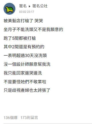 超過30天沒洗頭!她一出月子「急衝5美髮店」洗頭全遭拒 「哭喊歧視產婦」一票人全不挺