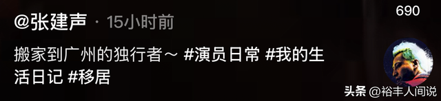 大約晚上11點,41歲張建聲分享了一段獨白影片,並在留言處感慨的說道:搬家到廣州的獨行者。雖說這句話聽起來很簡單,但卻透露了諸多的信息以及疑問。