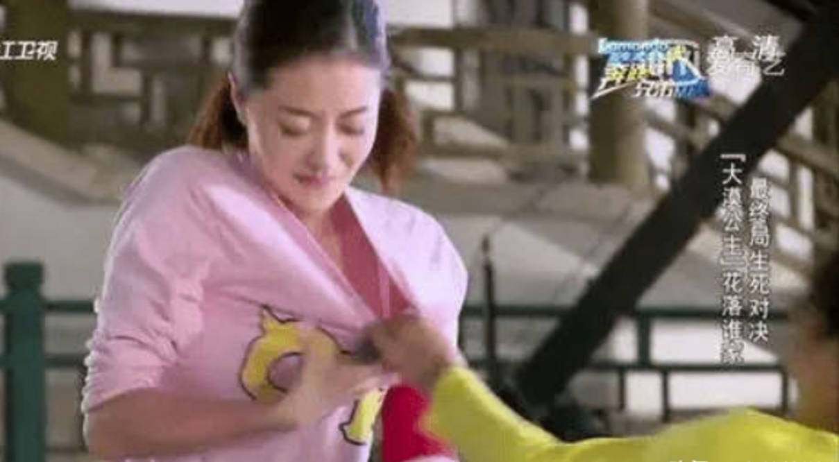 幾場較量下來,她明顯處於優勢。她幾次保護被撕破的名牌,彎下腰差點掉下來,但最後還是頑強地爬了起來。她還趁熊黛林不注意抓住了對方的胸前衣領,然後用力往下拉,絲毫不擔心鏡頭裡尷尬的部分。