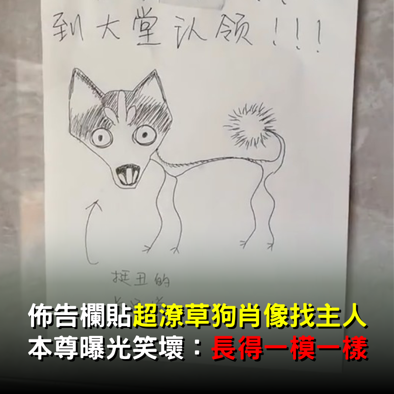 佈告貼「怪狗走失圖」找主人!本尊曝光網友笑壞:根本畫到心坎裡