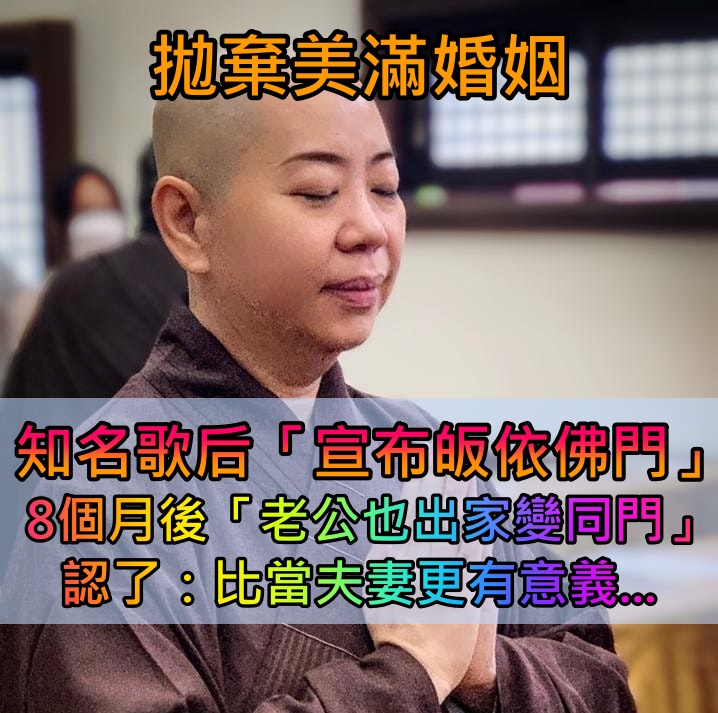 夫妻變同門!已婚女歌手「等兒結婚生子」出家為僧 8個月後「老公也皈依佛門」:比做夫妻更有意義