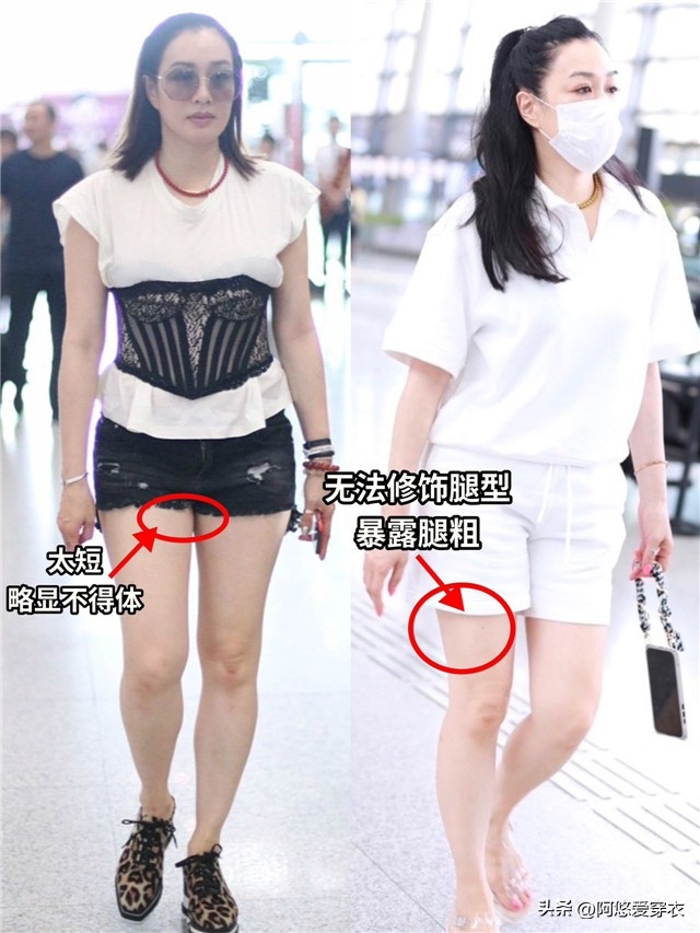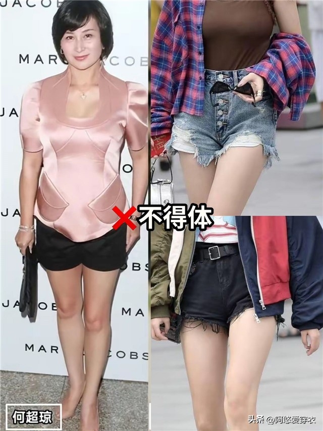 為什麼不建議你穿短褲?是因為短褲對於大齡女性來說,很容易產生不得體的感覺,對於年齡大的女性而言,穿衣搭配露膚度過高的造型都容易產生不得體不優雅的感覺,尤其是像這種超短褲,基本上把整條腿的肌膚露出來,就會讓人們的視覺重心放在腿部,如果你沒有姣好的氣質,出眾的身材,穿短褲就非常容易走光暴露。