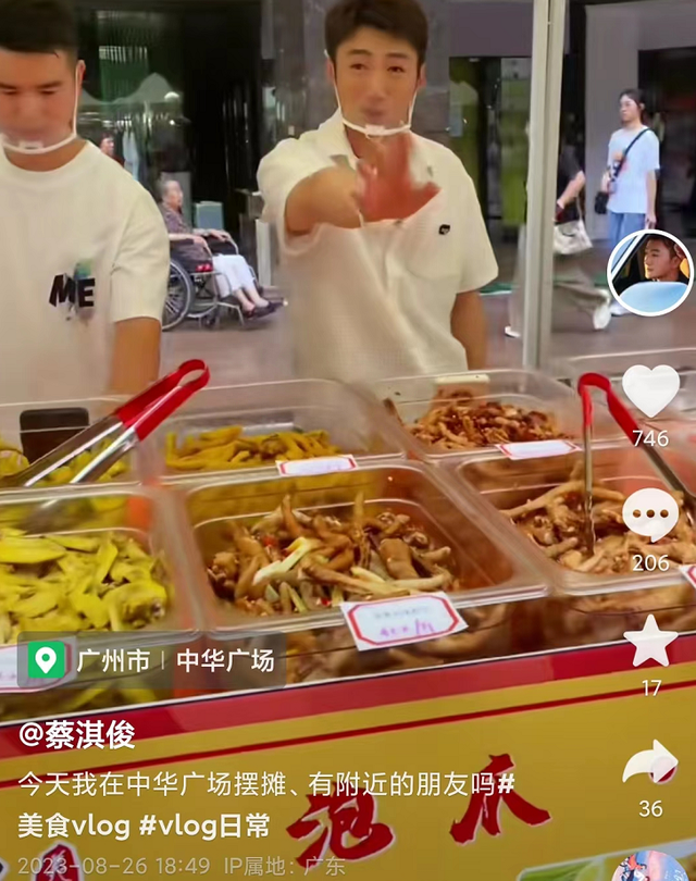 26日,蔡淇俊在社群平台上分享了一段影片,並留言透露自己在廣東某廣場擺攤。