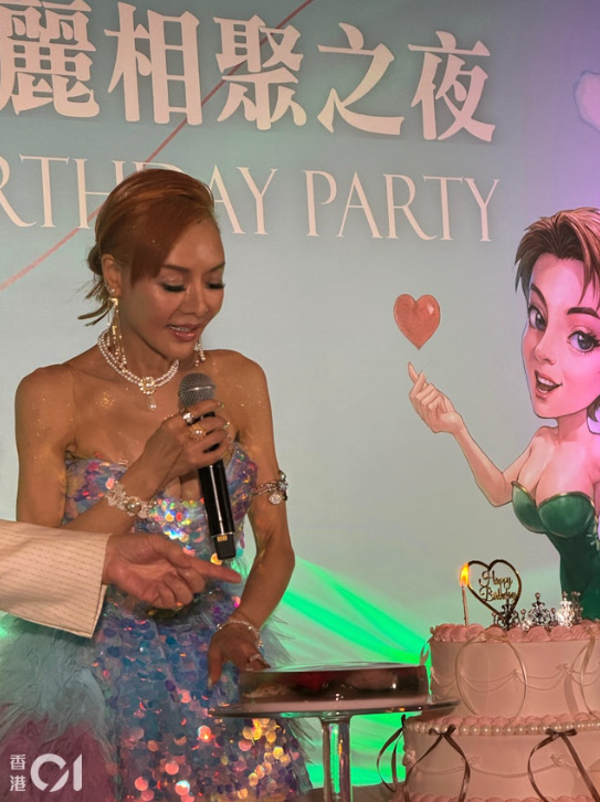 下一套換上性感閃亮低胸晚禮服,展現36F魔鬼好身材,在賓客的歡呼祝福聲中切下生日蛋糕,老牌歌手胡楓更獻唱一曲《情花開》,為這場難忘的派對增添亮點!