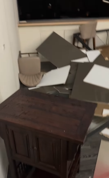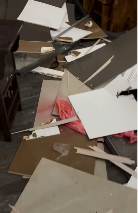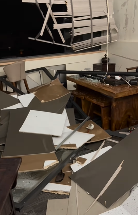 根據《NOWnews今日新聞》、《ETtoday新聞雲》報導,鳳梨在社群平台曬出慘況,只見玻璃窗完全碎裂,建材散落一地,強風夾帶雨水直接灌入室內,造成嚴重積水。面對如此慘況,鳳梨也只能無奈表示:「不知道被什麼東西砸到玻璃,天災真的也不能說什麼,心很累罷了。」