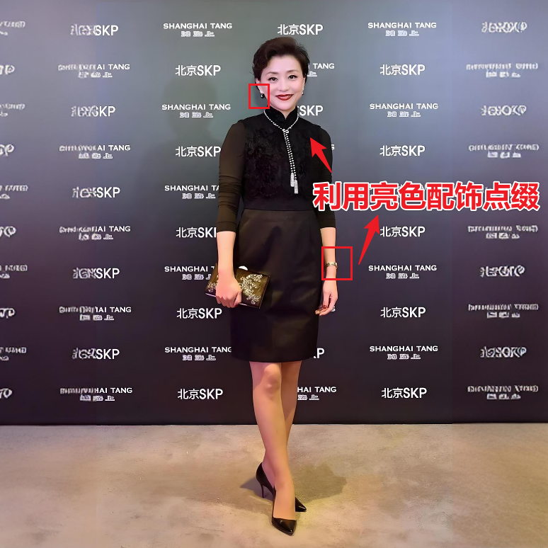 黑色雖然經典百搭,但過多的黑色可能會顯得沉重,如果沒有配飾的點綴還會顯得過於樸素。加入一些亮色的配飾,如金色的包包、銀色的飾品等,能夠立刻打破黑色的單調,為全黑的穿搭增加色彩對比和層次,讓整體造型煥發出新的活力。