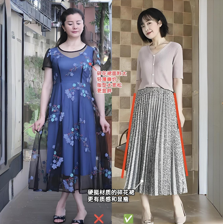避免選擇過於軟塌的材質,這樣的材質容易貼身,不易展現出優雅的氣質。推薦選擇棉麻、雪紡、真絲等材質,它們既輕盈又透氣,非常適合夏季穿著。