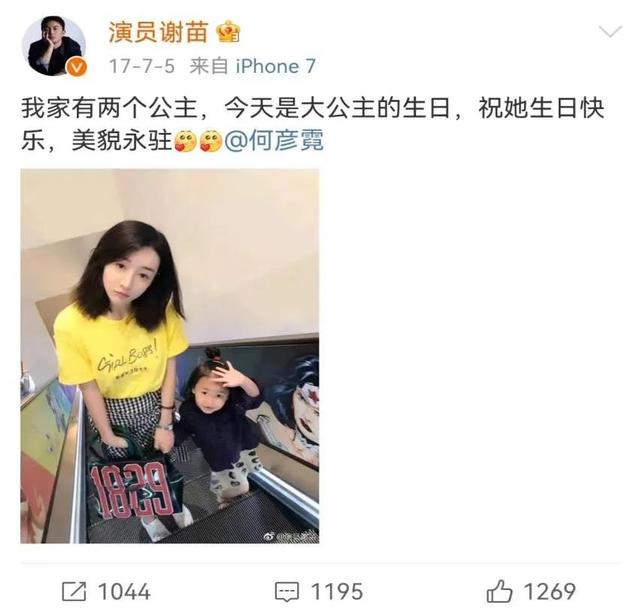 老婆生日當天他會發文:「我家有兩個公主,今天是大公主的生日,祝她生日快樂,美貌永駐!」俏皮的言辭與配圖,讓網友們忍俊不禁:「硬漢謝苗,還有這麼浪漫鬆弛的一面!」