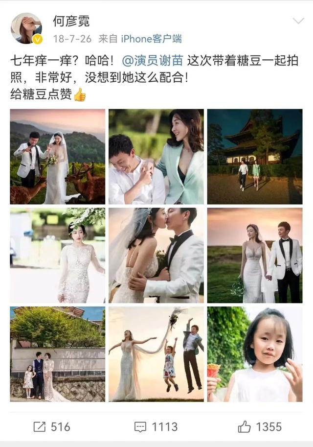一段好的緣分,就是這麼妙不可言,心心相惜的兩個人低調地喜結連理。沒有奢華的婚宴,也沒有大張旗鼓的宣傳,2012年,謝苗和何彥霓步入婚姻的殿堂,2013年,倆人的愛情結晶「糖豆」出生。