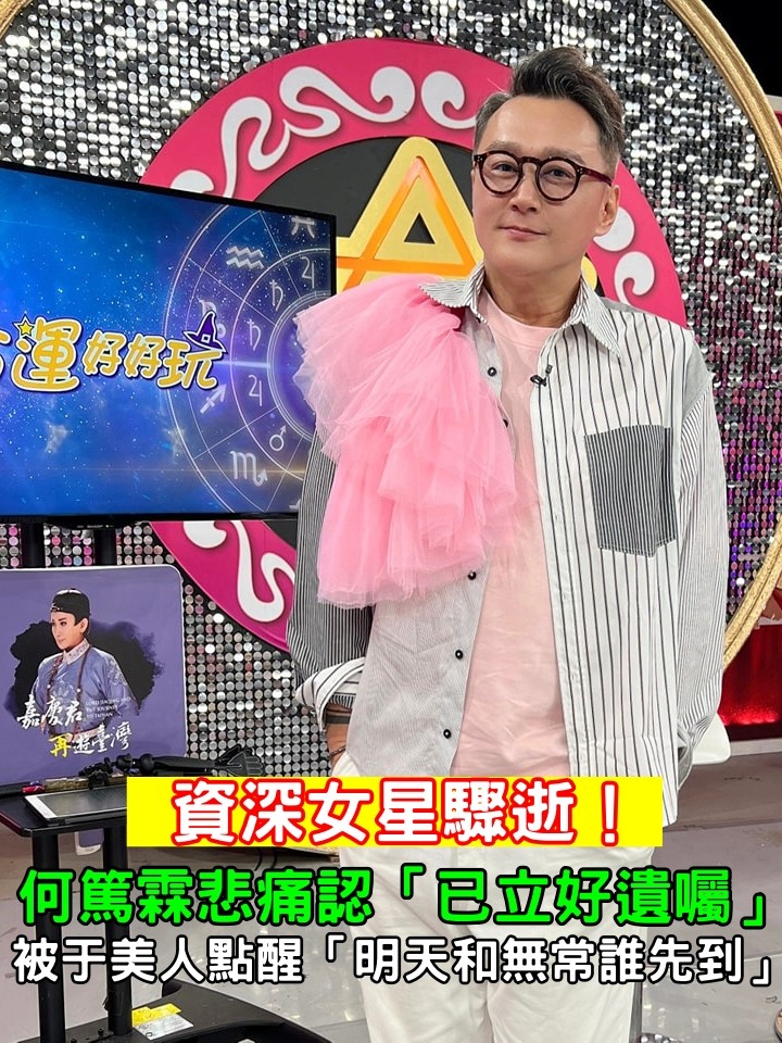 資深女星驟逝!何篤霖悲痛認「已立好遺囑」 被于美人點醒「明天和無常誰先到」